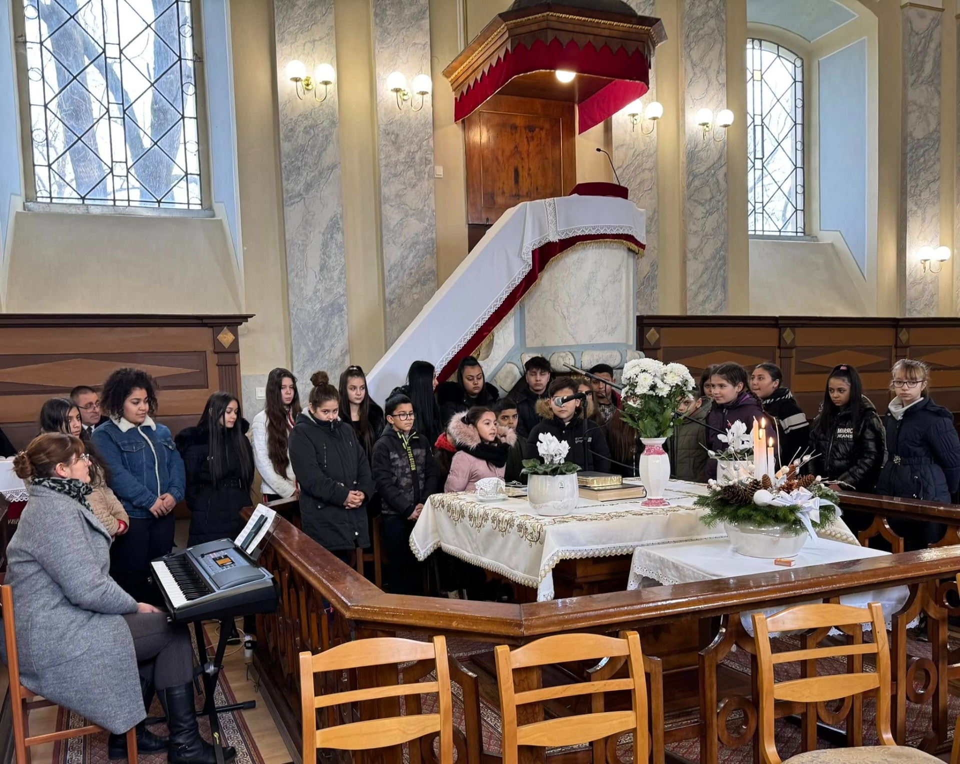 Vasárnap délután 16 órakor meggyújtottuk városunk adventi koszorúján a harmadik gyertyát is. A harmadik gyertya Szűz Máriát jelképezi, aki fiút szült az emberiség örömére. Ezért lett ez az öröm jelképe, különlegességét pedig rózsaszín színe is mutatja. Az ünnepvárás pillanatait a 3.a és 3.b osztályos tanulók műsora emelte és tette meghitté....