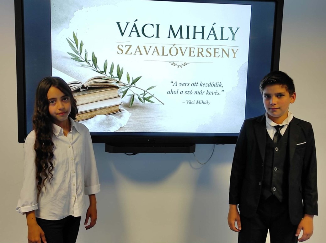 Április 11-e, a magyar költészet napja alkalmából idén is megrendezésre került a Váci Mihály szavalóverseny Nyíregyházán a Váci Mihály Kulturális Központban. Iskolánkat Lakatos Zoé és Balogh Brendon 5.a osztályos tanulók képviselték. Mindketten a tavaszi szünetet is a felkészüléssel töltötték, így nagy izgalommal vágtak neki a versenynek. Zoé Váci Mihály Sarkcsillagom/Szülőföldem című költeményét adta elő, míg Brendon Zelk Zoltán Csoda című alkotásával versenyzett. Nagy örömmel fogadtuk, hogy a zsűri értékelése alapján a Gyermek I. kategóriában Lakatos Zoé Különdíjat kapott, melyhez szívből gratulálunk.